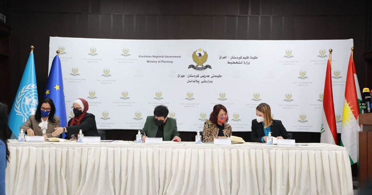 هەولێر، هەرێمی کوردستان، عێراق (GOV.KRD)- رۆژی سێشەمە ١/٣/٢٠٢٢ لە شاری هەولێر بەئامادەبونی کوێستان محەمەد، وەزیری کار و کاروباری کۆمەڵایەتی و زاگرۆس فەتاح، بریکاری وەزارەتی پلاندانان و نوێنەری رێکخراوەکانی یونیسێف و کاری جیهانی و خۆراکی جیهانی لێکتێگەیشتنێک واژۆ کرا.
