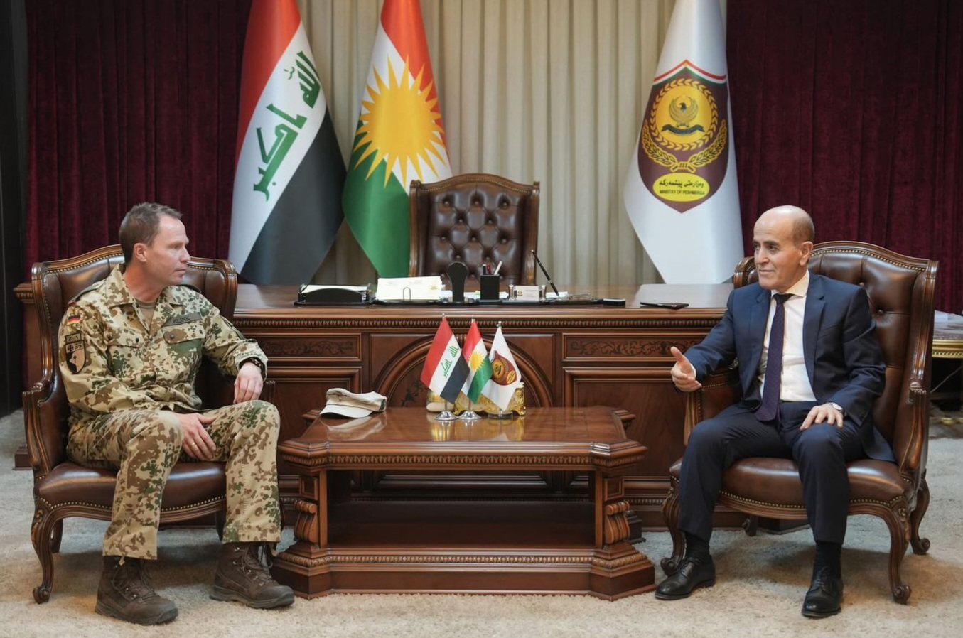 ڕۆژی یەکشەممە، ٢٢ی شوباتی ٢٠٢٦، سەرۆکی ئەرکانی وەزارەتی کاروباری پێشمەرگە، پێشوازی لە فەرماندەی هێزەکانی ئەڵمانیا لە هەرێمی کوردستان کرد.