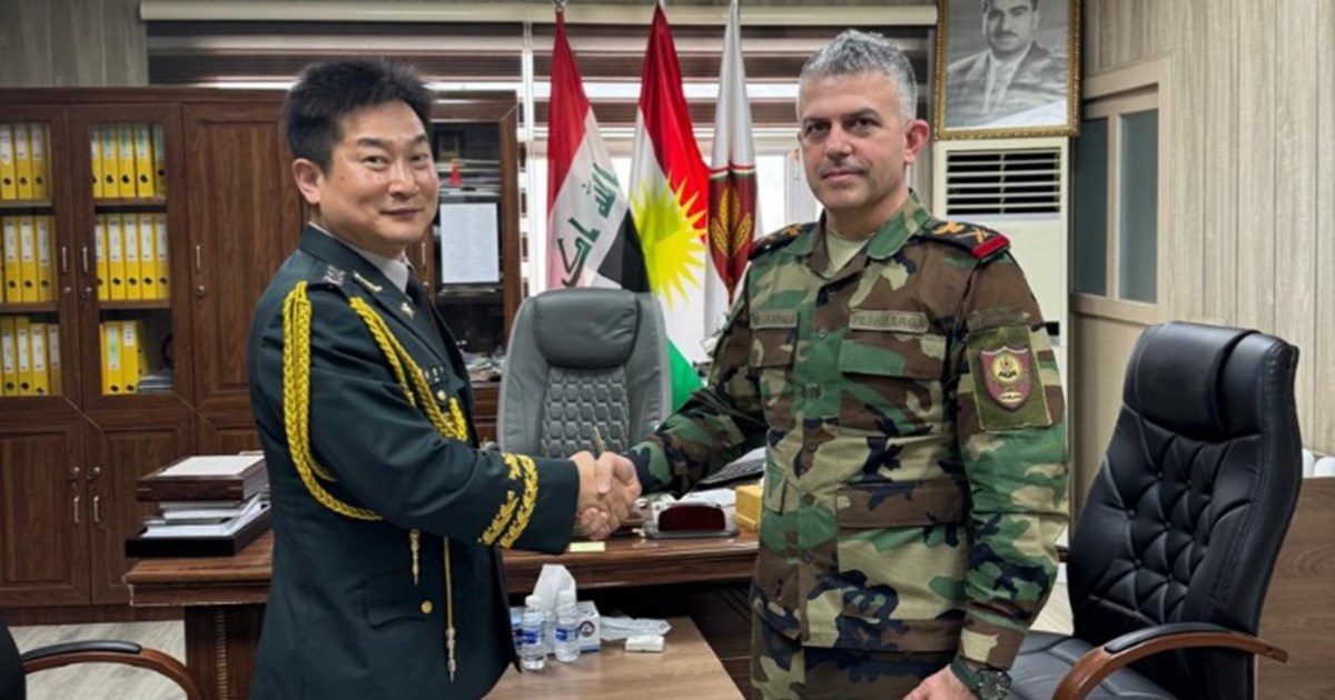 بەڕێوەبەری هەماهەنگی و پەیوەندییەکانی وەزارەتی کاروباری پێشمەرگە پێشوازی لە پاشکۆی سەربازیی باڵیۆزخانەی کۆریای باشوور کرد