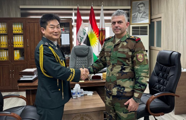 بەڕێوەبەری هەماهەنگی و پەیوەندییەکانی وەزارەتی کاروباری پێشمەرگە پێشوازی لە پاشکۆی سەربازیی باڵیۆزخانەی کۆریای باشوور کرد