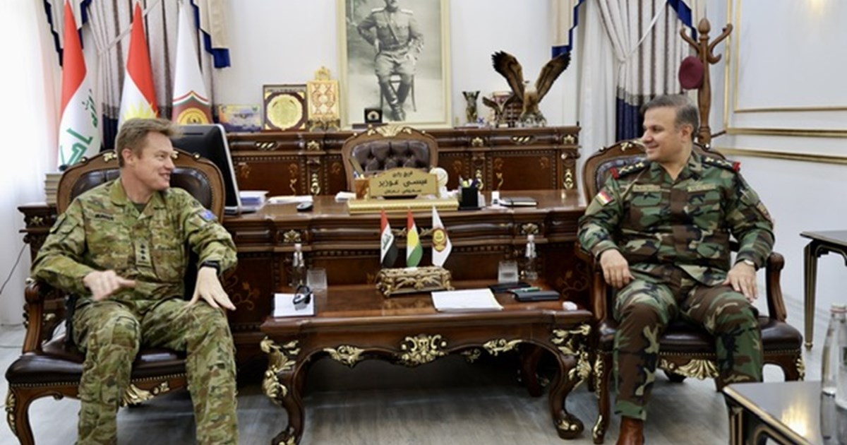 ئەمینداری گشتی وەزارەتی پێشمەرگە پێشوازی لە بەرپرسی بەشی سەربازی کونسوڵخانەی بەریتانیا لە هەولێر کرد