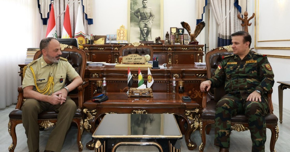 سەرۆکی ئەرکانی وەزارەتی کاروباری پێشمەرگە پێشوازی لە پاشکۆی سەربازیی باڵیۆزخانەی ئیتاڵیا کرد