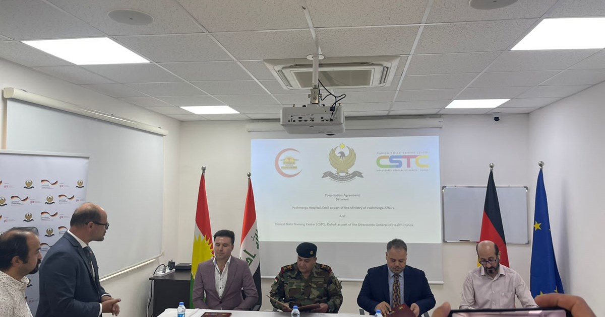 هەولێر، هەرێمی کوردستان (GOV.KRD)-ئەمڕۆ سێشەممە ٢٠ی ئەیلوولی ٢٠٢٢، بە ئامادەبوونی لیوا روکن هۆشمەند رەشید جێگری سەرۆکی ئەرکان بۆ ئیدارە و میرە، دکتۆر ئەفراسیاب بەڕێوەبەری تەندرووستیی دهۆك، ماتیاس نوێنەری حکوومەتی ئەڵمانیا لە نەخۆشخانەی پێشمەرگە لە هەولێر و بەڕێوەبەری و جێگری بەڕێوەبەر و بەرپرسی ئیدارەی نەخۆشخانەی پێشمەرگە، لە سەنتەری راهێنانی کلینکی cstc، لە شاری دهۆک، رێککەوتنامەیەکی لێکتێگەیشتن لەنێوان وەزارەتی پێشمەرگە و بەڕێوەبەرایەتیی تەندرووستیی دهۆك واژۆ کرا.
