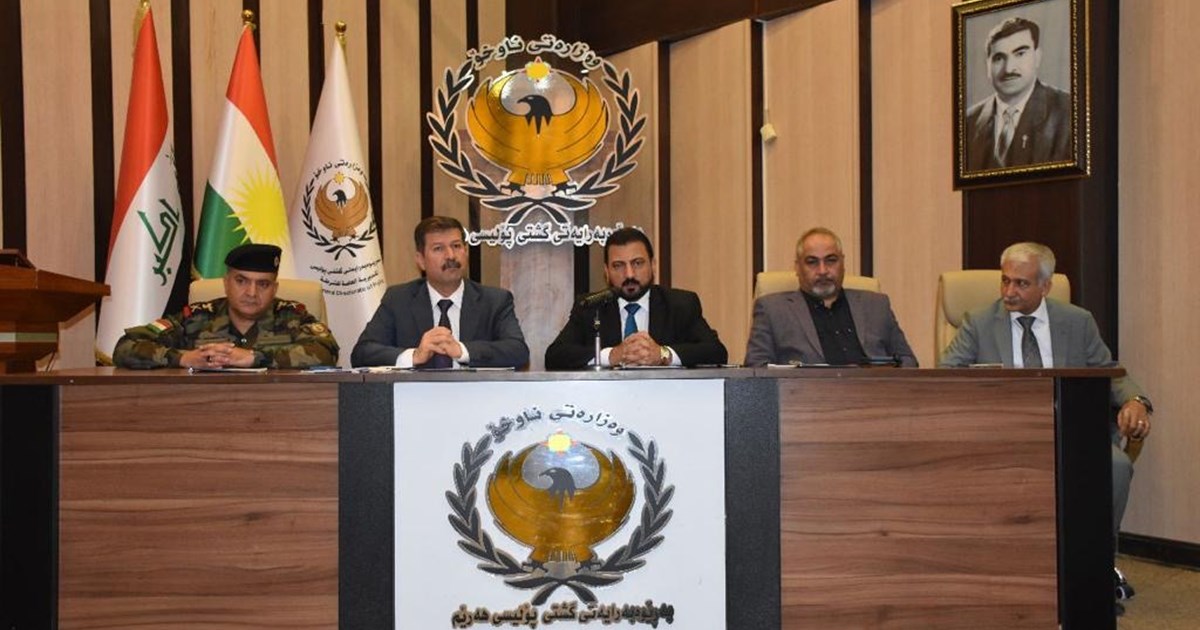 هەولێر، هەرێمی کوردستان (GOV.KRD)- رۆژی دووشەممە ٥ی حوزەیرانی ٢٠٢٣، لە دیوانی بەڕێوەبەرایەتی گشتی پۆلیسی هەرێم لە هەولێر، بە ئامادەبوونی لیوا روکن بەختیار محەمەد، ئەمینداری گشتی وەزارەتی کاروباری پێشمەرگە، لیوا روکن هۆشمەند، جێگری سەرۆکی ئەرکان بۆ ئیدارە و میرە، لیوا بەشدار عەبدوڵا، راوێژکاری وەزارەت و عەمید عوسمان محەمەد، بەڕێوەبەری گشتی راگەیاندن و هۆشیاری نیشتمانی وەزارەت، کۆمیسیاری باڵای کۆمیسیۆنی هەڵبژاردنەکانی عێراق و ژمارەیەک لە نوێنەرانی دامەزراوە ئەمنییەکان، بە بەشداری نوێنەرانی بەڕێوەبەرایەتی و لیواکان و یەکە سەربازییەکانی وەزارەتی کاروباری پێشمەرگە، وۆرک شۆپێکی تایبەت بە هۆشیاری هەڵبژاردن بەڕێوەچوو.