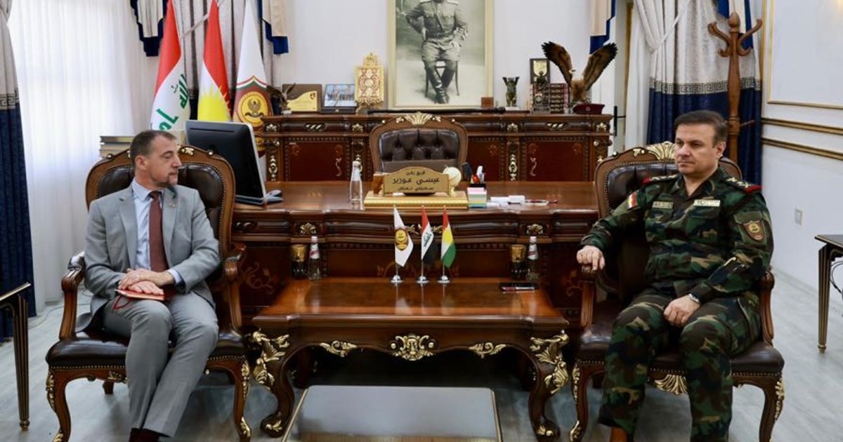 ڕۆژى يهكشهممه ٥ــی ئایاری ٢٠٢٤، فەریق روکن عیسا عوزێر، سەرۆکی ئەرکانی وەزارەتی پێشمەرگە، لە دیوانی وەزارەت، پێشوازی لە د. یان بریم، کونسولی گشتيی فەرەنسا لە هەرێمی کوردستان و کۆڵۆنێڵ دیڤا، پاشکۆی سەربازی لە باڵیۆزخانەی فەرەنسا لە بەغدا کرد.