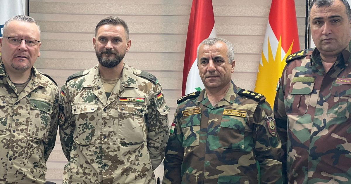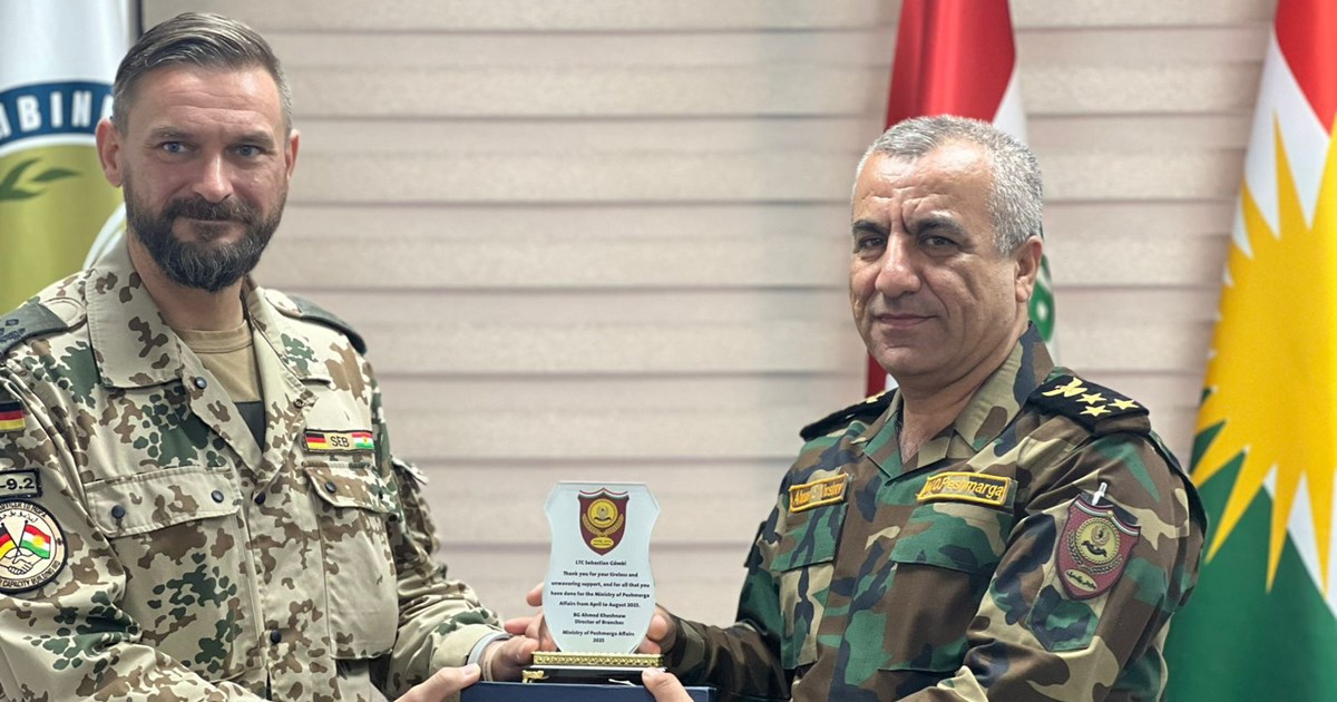 ئەمڕۆ چوارشەممە ١٣ ی ئابی ٢٠٢٥، ئەحمەد سادق، بەڕێوەبەری ڕشتەکانی وەزارەتی کاروباری پێشمەرگە، پێشوازی لە شاندێکی سەربازیی ڕاوێژکارانی سوپای ئەڵمانیا لە هەرێمی کوردستان کرد.