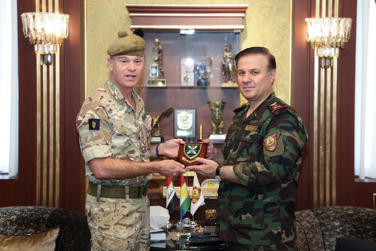 سەرۆکی ئەرکانی وەزارەتی کاروباری پێشمەرگە پێشوازی لە مولحەقی سەربازیی باڵیۆزخانەی بەریتانیا کرد