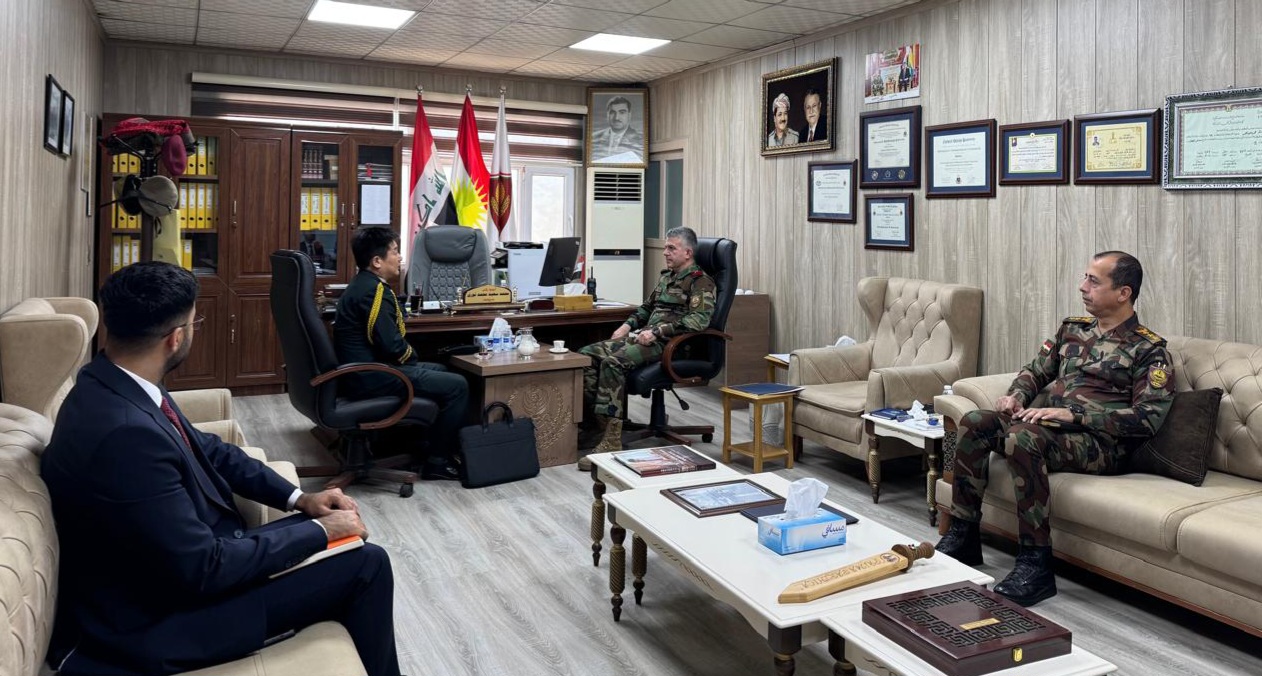 بەڕێوەبەری هەماهەنگی و پەیوەندییەکانی وەزارەتی کاروباری پێشمەرگە پێشوازی لە پاشکۆی سەربازیی باڵیۆزخانەی کۆریای باشوور کرد