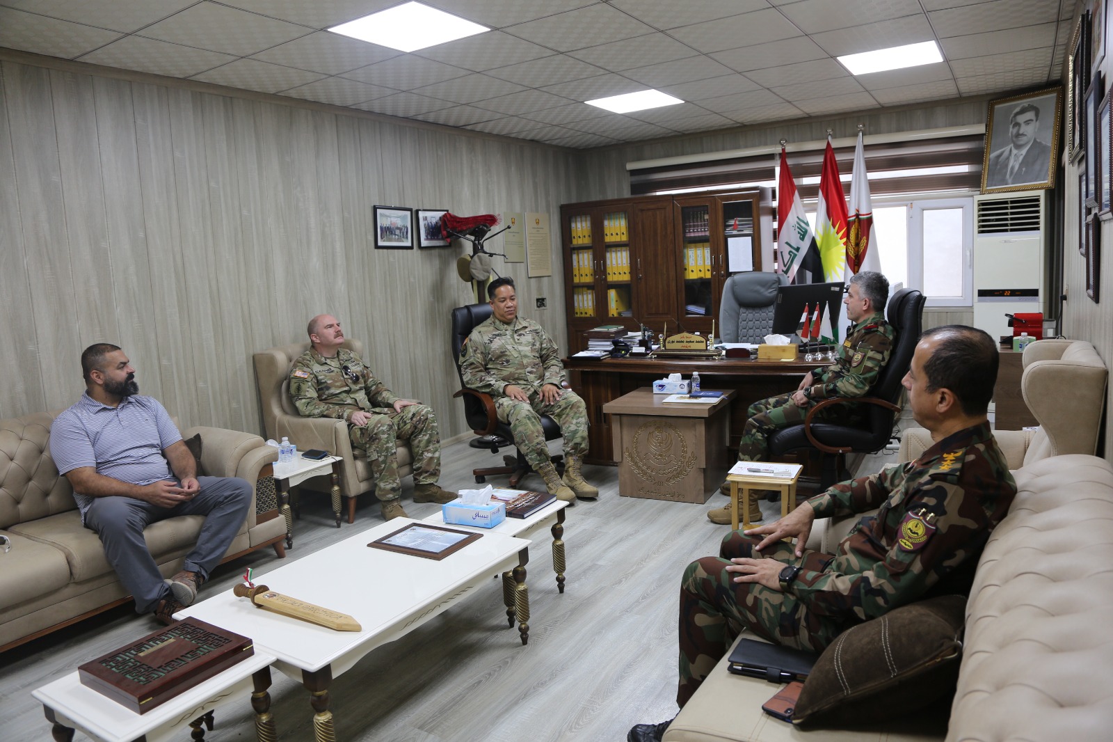 ڕۆژی چوارشەممە، ٣ی ئەیلوولی ٢٠٢٥، لیوا روکن محەممەد سەعید بەڕێوەبەری هەماهەنگی و پەیوەندییەکانی وەزارەتی کاروباری پێشمەرگە، پێشوازی لە کۆڵۆنێڵ دێک پایلویک بەرپرسی نووسینگەی هاریکاری ئاسایش لە کونسوڵخانەی گشتیی ئەمریکا لە هەولێر و تیمێکی یاوەری کرد.
