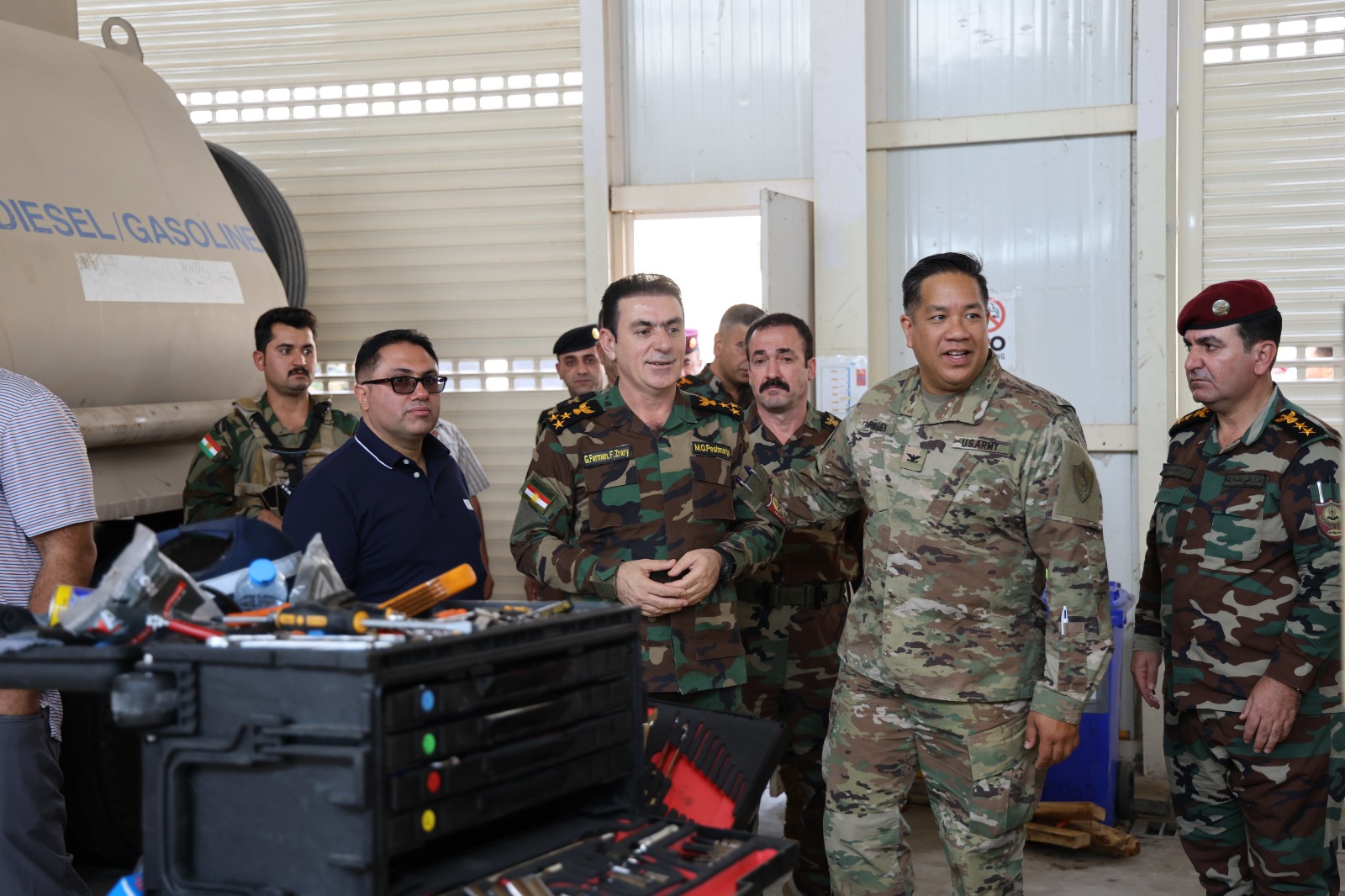 لە کۆبوونەوەکەدا گفتوگۆیان لەبارەی ئاستی لۆجستیی هێزەکانی پێشمەرگە کرد و هەردوولا جەختیان لە بەرەوپێشبردن و بەرزکردنەوەی زیاتری ئاستی لۆجستی هێزەکانی پێشمەرگە کردەوە. دواتر شاندی میوان بە یاوەری جێگری میرەی گشتیی سەربازی، فەرماندەیی (هـ.آ.ك) یان بەسەر کردەوە; ئەمەش بۆ لە نزیکەوە ئاگاداربوون لە شێوازی بەڕێوەچوونی کارەکانی وەرشە، کە تیایدا کۆمپانیای ئەمینتۆمی ئەمریکی، سەرپەرشتیی کاری چاککردنەوەی ئالیاتی سەربازی دەکات.