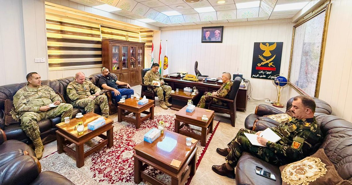 ڕۆژی دووشەممە، ٨ی ئەیلولی ٢٠٢٥، لیوا روکن ڕێبوار عەلی کەریم، جێگری سەرۆکی ئەرکانی وەزارەتی کاروباری پێشمەرگە بۆ ئۆپەڕاسیۆنەکان، پێشوازی لە کۆڵۆنێڵ دێک پایلویک، بەرپرسی نووسینگەی هاریکاری ئاسایش لە کونسوڵخانەی گشتی ئەمریکا لە هەرێمی کوردستان و شاندێکی یاوەری کرد.