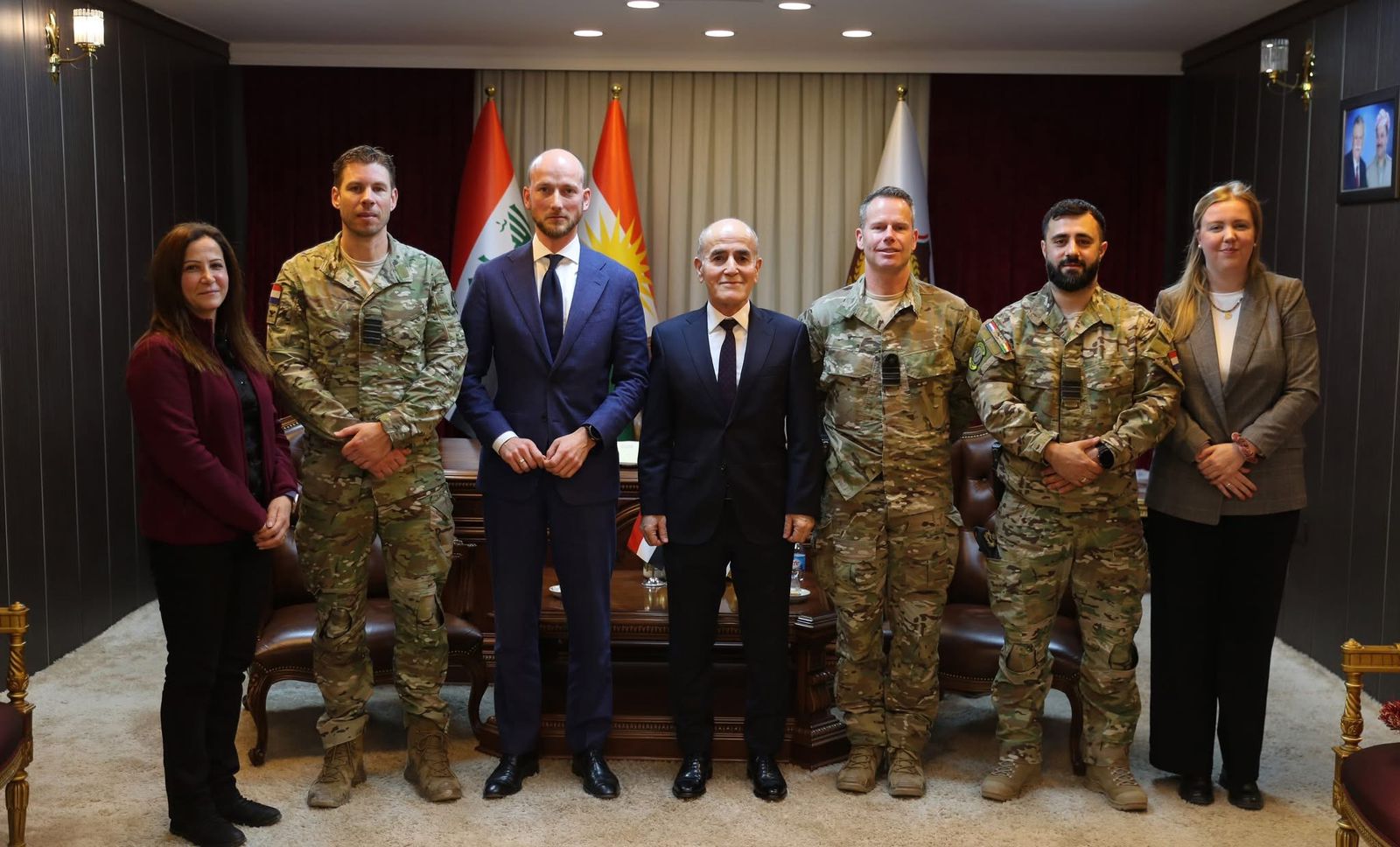 ڕۆژی سێشەممە، ٢٧ی کانوونی دووەمی ٢٠٢٦، شۆڕش ئیسماعیل، وەزیری پێشمەرگەی حکومەتی هەرێمی کوردستان پێشوازی له‌ ئەدریان ئایسلستین، کونسولی گشتیی شانشینی هۆڵەندا لە هەرێمی کوردستان، کۆڵۆنێڵ ئێریک، بەرپرسی دەستەی ڕاوێژکارانی هاوپەیمانان لە هەرێمی کوردستان و تیمی سەربازيی یاوەریان كرد.