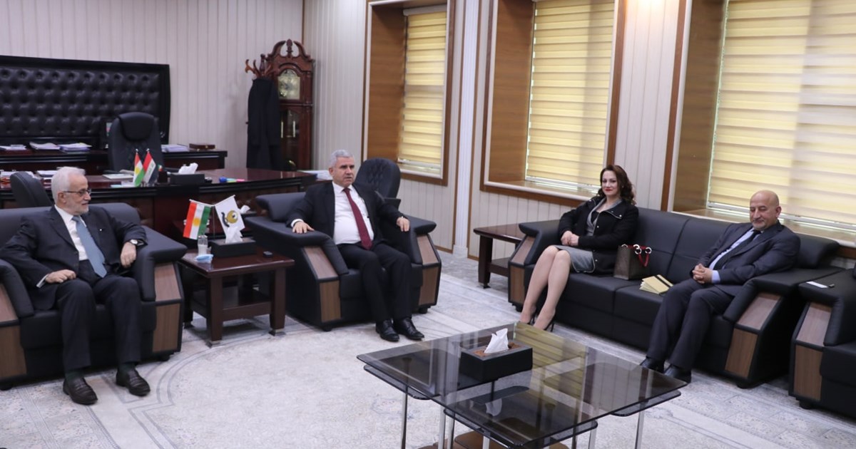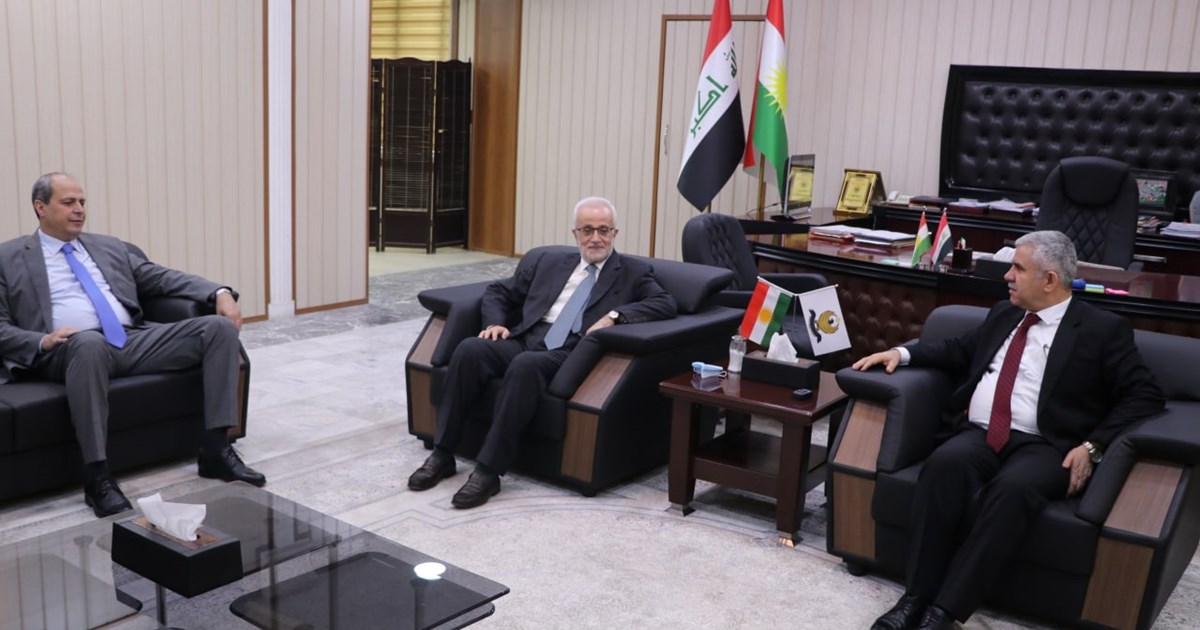 هەولێر، هەرێمی کوردستان، عێراق (GOV.KRD)- ئهمڕۆ پێنجشەممە ڕێکەوتی 10-2-2022 (کەمال موسلیم) وەزیری بازرگانی و پیشەسازى بە ئامادەبوونى (فتحی مودەریس) ڕاوێژکارى پەیوەندیەکان پێشوازیان لە شاندێکى بانکى ( بیروت و البلاد العربی- BBAC) بە سەرۆکایەتى (شوقی بەدر) جێگرى بەڕێوەبەری گشتی بانکەکە و بە یاوەرى (زیاد حسان) بەڕێوەبەری لقەکانى بانک لە باکووری عێراق و هەرێمی کوردستان و (پەروین خان) بەڕێوەبەری لقی هەولێری بانکەکە کرد.