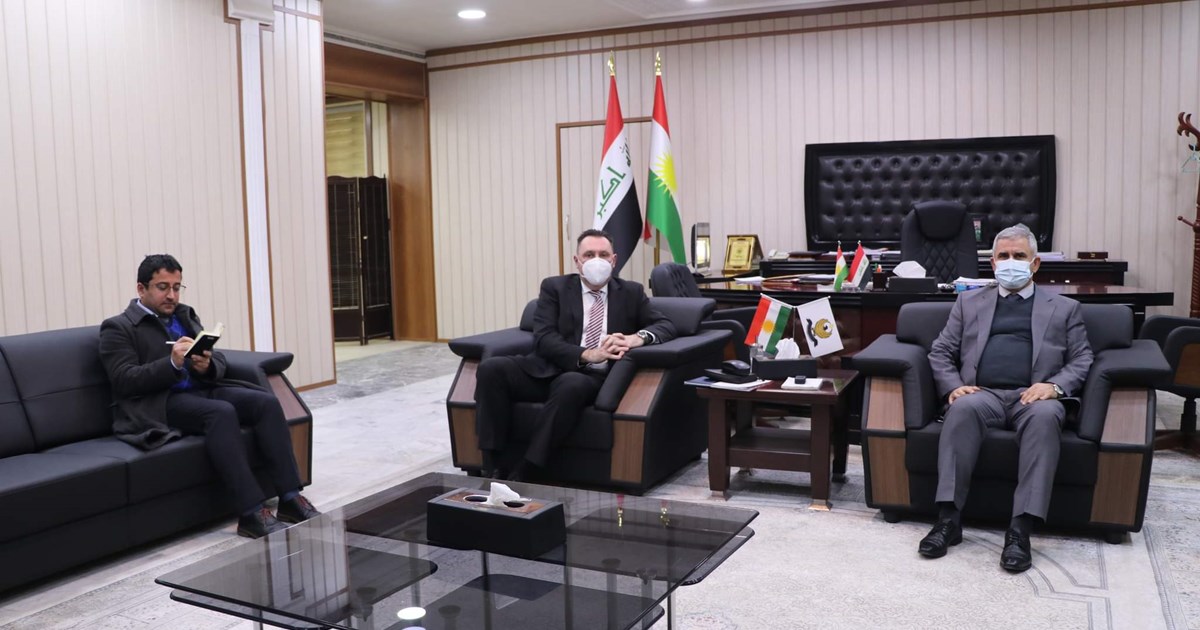 هەولێر، هەرێمی کوردستان، عێراق (GOV.KRD)- ڕۆژی یەكشەممە 16-1-2022 (كەمال موسلیم) وەزیری بازرگانی و پیشەسازی بە ئامادەبوونی بریكارانی وەزارەت بۆ كاروباری بازرگانی و پیشەسازی و ڕاوێژكاری پەیوەندییەكان، پێشوازییان لە (كارێل كۆرتانیك) كونسوڵی گشتیی نوێی كۆماری چیك لە هەرێمی كوردستان كرد.