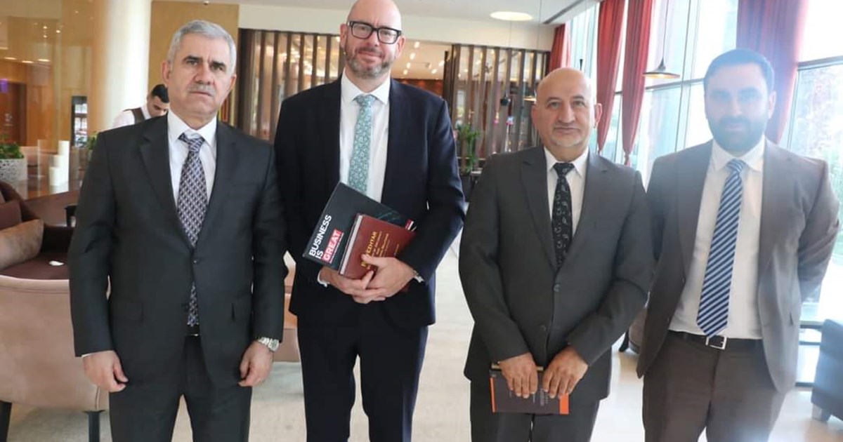 هەولێر، هەرێمی کوردستان، عێراق (GOV.KRD)- ڕۆژی ٥ ی تهممووزی ٢٠٢٢ (کەمال موسلیم )وەزیری بازرگانی و پیشەسازی بە یاوەریی ڕاوێژکاری پەیوەندییەکانی وەزارەت سەردانی کونسوڵگەری وڵاتی بەریتانیایان کرد لە شاری هەولێر و لە لایەن (دیڤد هاند) کونسوڵی گشی بەریتانیا و بە ئامادەبوونی (ڕەوەند عەسکەری ) کونسوڵی بازرگانی پێشوازیان لێکرا ، سەردانەکە بە مەستی بەهێزکردنی پەیوەندییە بازرگانی و پیشەسازی و ئابووریەکانی نێوان هەرێمی کوردستان و وڵاتی بەریتانیا بوو.