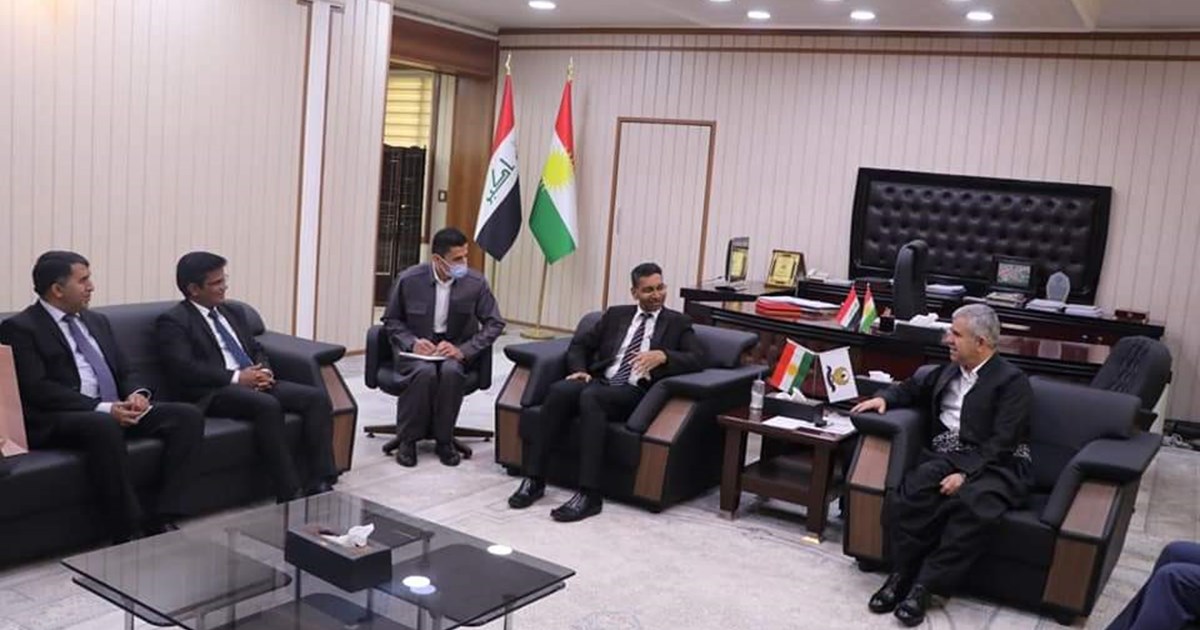 هەولێر، هەرێمی کوردستان، عێراق (GOV.KRD)- پێنجشەممە 10-3-2022 (كەمال موسلیم) وەزیری بازرگانی و پیشەسازی حكومەتی هەرێمی كوردستان پێشوازی کرد لە (برشاند بیسای) باڵیۆزی هیندستان لە عێراق و (سوبهاش سی كاین) كونسوڵی گشتی و (دەهرەمەندەر هومار) لە کونسوڵگەری گشتیی هەرێمی كوردستان.