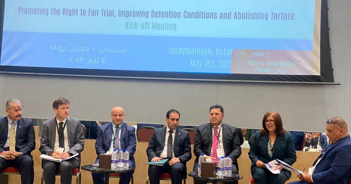 عقدت منظمة النجدة الشعبية (PAO)، منظمة العون الشعبي النرويجي ومنظمة المحقق لسيادة القانون مؤتمراً لتعزيز الحق في محاكمة عادلة، تحسين ظروف الاحتجاز وإلغاء التعذيب. شارك في المؤتمر الذي عُقد بدعم من الاتحاد الأوروبي. الدكتور ديندار زيباري منسق التوصيات الدولية في حكومة إقليم كوردستان، ممثلون عن رئاسة مجلس الوزراء والبرلمان العراقي، مسؤول حقوق الإنسان في بعثة الأمم المتحدة لمساعدة العراق يونامي، السلطة القضائية لإقليم كوردستان والعراق، عدد من البرلمانيين والقضاة والجهات ذات الصلة.