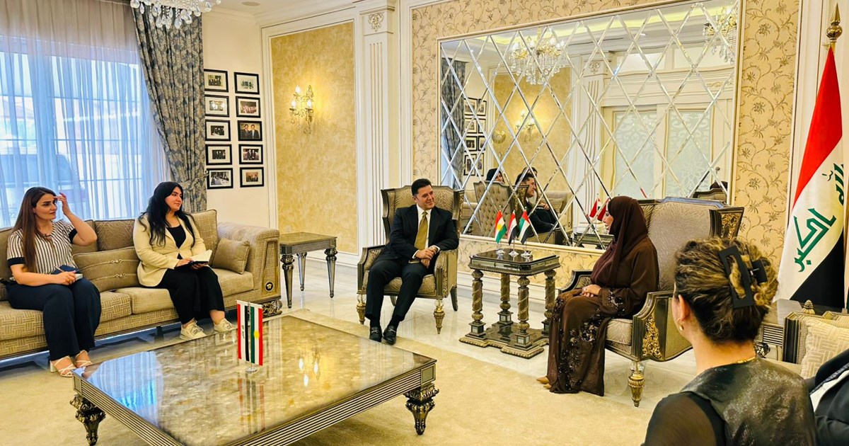إستقبل منسق التوصيات الدولية في حكومة إقليم كوردستان، ديندار زيباري، يوم الأحد، التاسع والعشرين من حزيران-يونيو الجاري، القائم بأعمال القنصلية العامة لدولة الإمارات العربية المتحدة، السيدة شيخة بشير.
