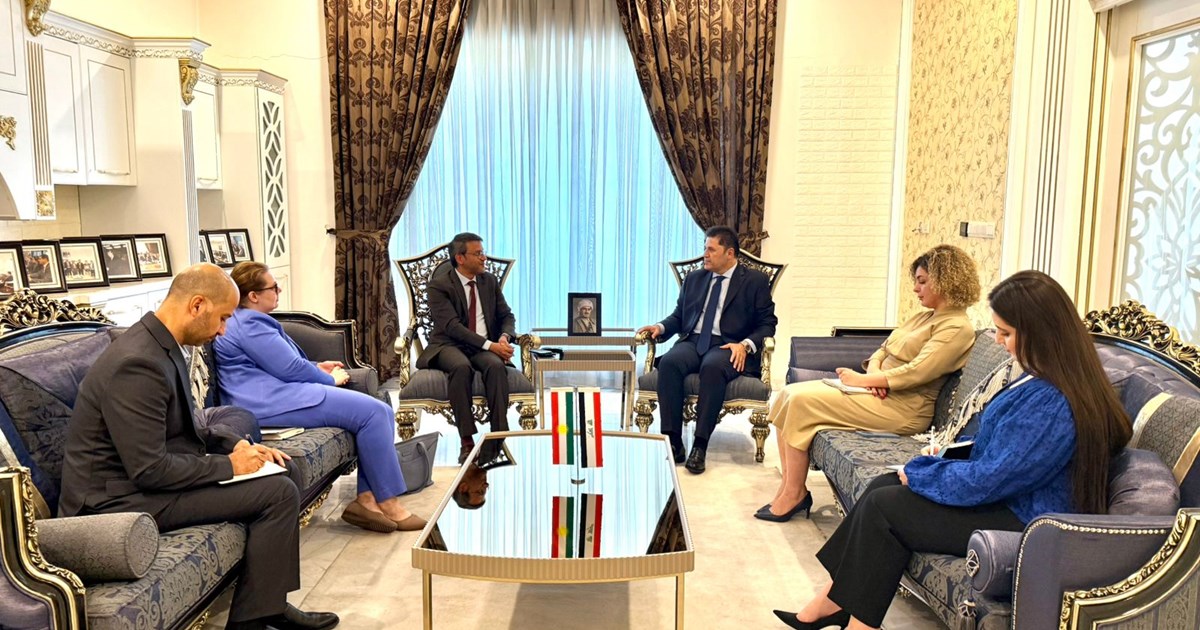 ڕۆژی دووشەممە ٤ی ئابی ٢٠٢٥، د. دیندار زێباری، ڕێکخەری ڕاسپاردە نێودەوڵەتییەکان، پێشوازی لە شاندێکی نووسینگەی نەتەوە یەکگرتووەکان بۆ بەرەنگاربوونەوەی تیرۆر کرد، کە پێکهاتبوو لە بەڕێوەبەری نووسینگەی نەتەوە یەکگرتووەکان بۆ بەرەنگاربوونەوەی تیرۆر لە بەغدا، زیشان ئەمین، بەڕێوەبەری ڕێکخستنی پرۆگرام ئەخنس ڤێنێما و بەرپرسی بەڕێوەبردنی پڕۆگرام مستەفا موحسین.
